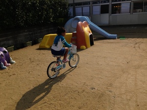 11月の第一日曜日に長女が補助輪外して~って言うので外して練習することに。しばらく練習していると次女も外してと言うので外してやり一緒に練習してその日は2~3mしか乗れず一週間自分達で練習することに。一週間後、この間の日曜日に練習すると言うので近くの広場で練習することに。