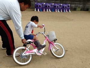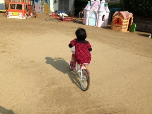 というわけで長男坊も練習することに。長男坊はまだまだですね。補助輪付きの自転車を買ってあげなくては。三輪車乗りはプロ並みなんですけどね(^_^)