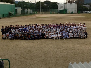 野球教室の後全員で写真撮影の様子です。
