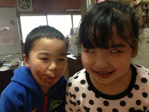 この間の建国記念日の日、カミさんと上のお姉ちゃん二人とバレンタインチョコレートを作るというのでテレビをみながら作る様子を見ていると長男坊が手伝っているのか食べてばかりでスゴイ顔になっていたので写真を撮りました!
