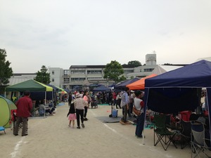 さすがマンモス小学校。地域のテントの後ろに各家族のテントが無数に並んでいます。