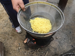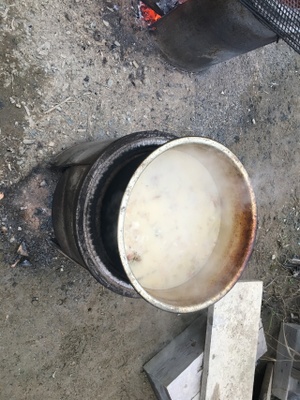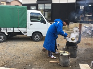 29日の朝、私が作業場に行くとまた釜を持ち出し火を焚いて何やら作業をしている弟の姿が!