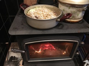 です。薪ストーブで結構調理出来ますよ。しかも焦げ付かないんです(^^)何故か⁈不思議です。
