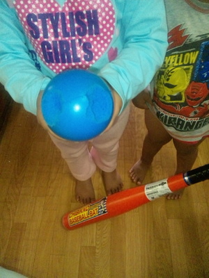 2歳半頃から野球に興味を持った長男坊!ウレタン素材のボールを噛みちぎっているではないですか!