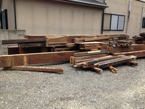 隣りの重要文化財の建物が一時解体されるため家がない間に隣りとの隙間の壁を修理して欲しいとの依頼があり現場視察していると解体された古材が気になって写真を撮って来ました。予想通り大きな材木が使ってあります。