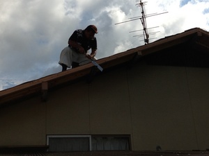 昨日は、軒先の悪い部分を切って破風板を打って地瓦を葺きました。