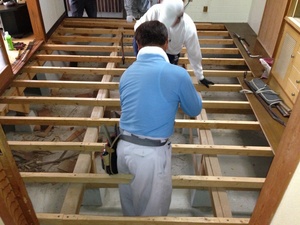 既存の床を剥いで床下を掃除して断熱材を入れる段取りをします。