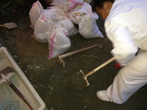 私と弟子君は、玄関アプローチの土間解体と下地調整地業です。