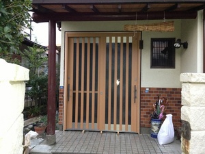 既存木製建具玄関扉の着工前の写真です。