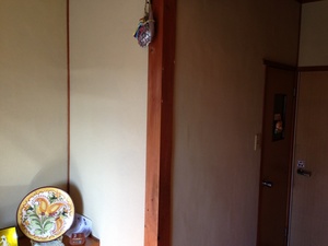 玄関ホールの壁の聚楽の塗り替え工事が完了しました。