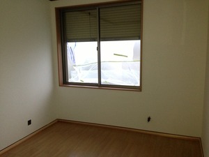 内部天井、壁のクロスが貼り終わりあとは電気屋さんがコンセントカバーと照明器具を取付けて内部も完成です。