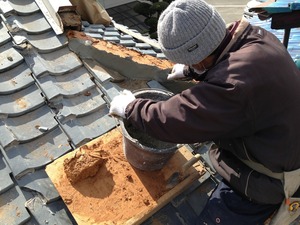 隅棟瓦を解体した後隅棟の下地を造ります。