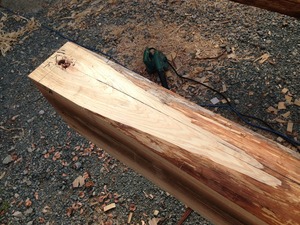 柱の座をとって柱のホゾ穴を墨付けした写真です。これから柱のホゾ穴を掘っていきます。