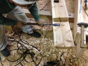 今度は鉋の刃があたらない所は突き鑿(ノミ)という道具を使って刻んでいます。