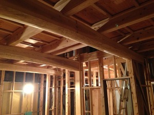 投光器に照らされた梁も雰囲気がいいです。思わずゆったりしたい気分になりますが、いかんいかん!っと言い聞かせて頑張っています。