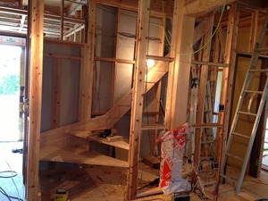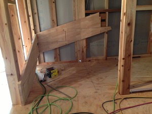 もう片方の直階段のササラ板も何度も仮付けしては微調整して取付けます。後の階段工事は後日またアップしますねぇ~。