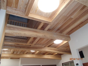このお宅ももちろん伝統工法木組みの家です。リビングには7m、6mの太鼓梁と4mの太鼓梁2本を敷梁に使い
