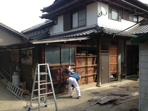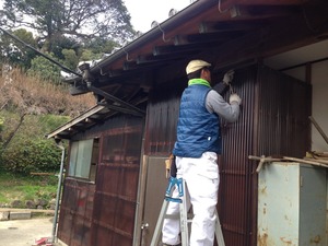 この間、アップした瓦工事と塗装工事の現場と平行して下炊事場所の屋根と壁の波板の
