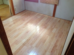 2階の4畳半の無垢の桜のフローリング張りの様子です。