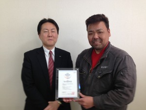 この写真は、いつもお世話になっているリクシル社員の方と記念撮影です。当然ですが右側が私です。なかなか写真は照れ臭くてアップしてないのですがこの日はリクシル社員の方と記念撮影ということでなんとか笑ってみたもののチョット引きつった笑顔になってますが普段はもっと優しい顔なんですよ(^^)