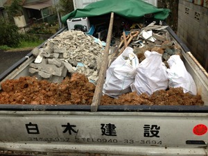 この日一日で浴槽と洗い場の土間の撤去と埋土の撤去と積み込みで一日が終わってしまいました。