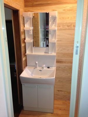既存の洗面台があったのですが今回洗面化粧台を新しく設置しました。