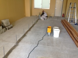 この写真は、ブロック積みの為鉄筋を土間に打ち込んでいる様子です。