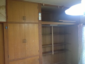 この写真は洋室の南側の着工前の写真です。この物入は今回解体して床と壁と天井を組み6畳の洋室を