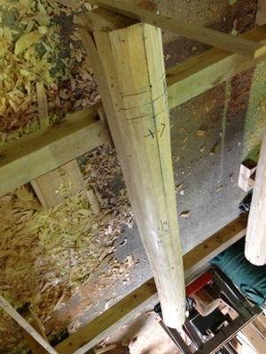 さて最近の仕事ですが小屋組み構造材の三引を桧の丸太を使うのでその丸太の墨付をブログにアップ