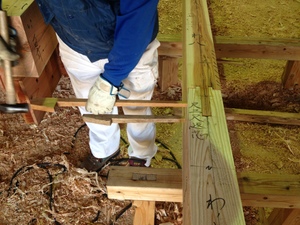 打ち込んでいる様子の写真です。この継手も同様に長さを確認して微調整が必要な時は微調整して完了です。