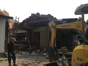 解体する部分と残す部分の縁切りが終わったらいよいよ本格的に解体工事が進みます。