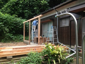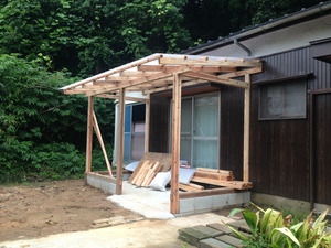 さん2人で一日でここまで出来ました。雨がいつ降るかわからないのでとにかく屋根まで