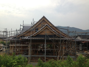 地瓦葺きが終わりいよいよ棟瓦を葺くところまで進んでいます。