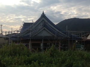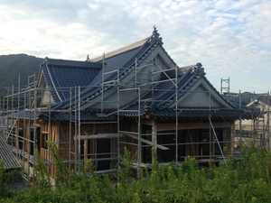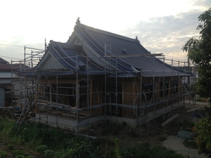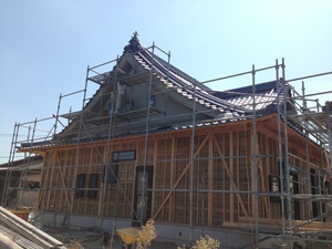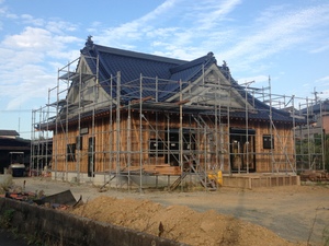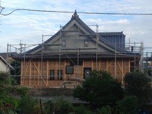 本格入母屋造の土壁平屋建て新築工事の外壁工事全景画像!