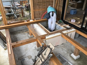 この画像は、テラスのウッドデッキ部分の土台と大引にも