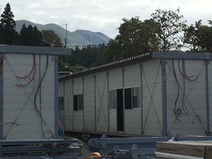 その為、福岡から復興工事できる作業員を呼ぶ為に仮設現場事務所を建てたと。