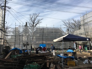 この画像は、2階の小屋組から軒桁や鴨居や長押などを丁寧に解いて