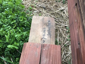 ここにも書いてありました。2階の柱の上側のホゾに書いてありました