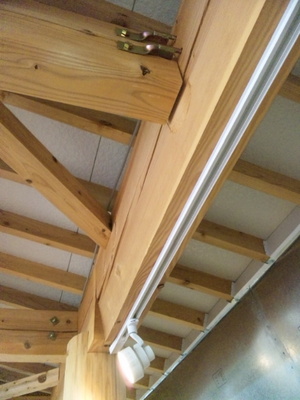 そして今日とある特産市場に行ったのですが、恐ろしい光景を見たので紹介します。その特産市場の木造の骨組が見えていたので仕事柄目がこういう所に行きます。木の継手部分が乾燥により木がひねり、(ねじれ)4.5センチほどずれています。これはプレカットにより複雑な仕口をせず胆略化した結果、木の癖を止めれず木が暴れてしまっています。これでは本当の強度は出ません。だから私たちは手を抜かずしっかりとした複雑な加工を手刻みで行い、木組のみで本物の強度を出します。一般的な家は、骨組の加工をプレカットで行いコンピューターで刻みを計算して行うので木の癖や将来どっちに曲がるとか予測できません。この画像の様な事が、自分の家の屋根裏で起こっていたら大変なことですし、恐ろしいことです。でも国が許可して強度があるとしてるんですから本当に恐ろしいことですよね。なんとかしなければ。