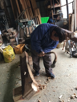 さて今日は、手刻みの中でも古代から受け継がれている手斧(チョウナ)によるなぐり仕上げの様子を
