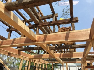 この画像は、2階の桁と梁は新しい材木に取り替えて小屋組は大正時代のものを