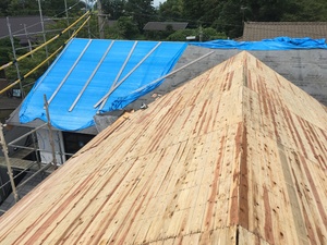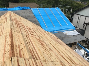 次のブログでは防水のルーフィングを張って板金を葺いている様子をアップしたいと思います。