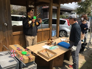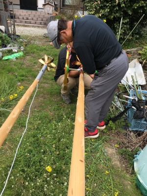 写真左側の矢車を組み立てているのが今回の主役のお父さんです。