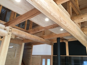 さて今日も本格反り屋根入母屋造土壁平家建ての家の内部完成の様子を