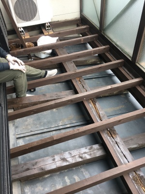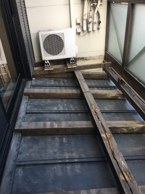 この画像は、バルコニーの床板を張り替える前の着工前の写真です。