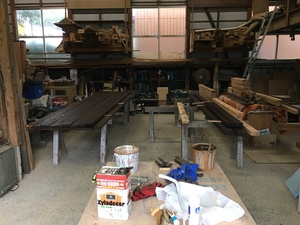 の写真です。現場で塗ることが困難だったため作業場に材料を搬入して塗装しました。