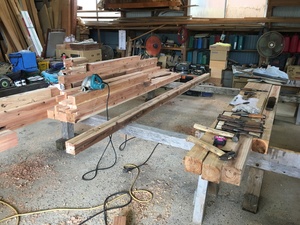 この倉庫は、3.64mx8mの大きさですがこの倉庫は墨付して刻み終わるまで職人2人で