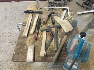 年末の休日の半日を使って金槌の柄を4本据え付けました。