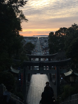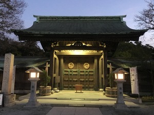 この画像は、数年前に世界遺産になった宗像大社です。5時過ぎていたので参門が閉まっていましたが