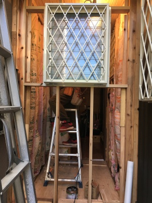 この画像は、間柱を建てサッシの下地枠を組んだ様子です。